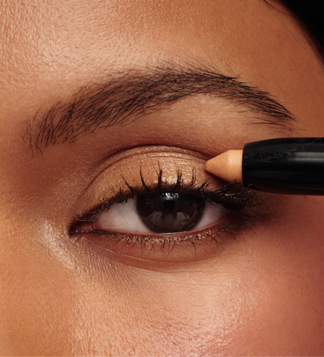 Breng een donkerdere tint aan onder de onderste wimperlijn voor een zacht smokey en liftend effect.